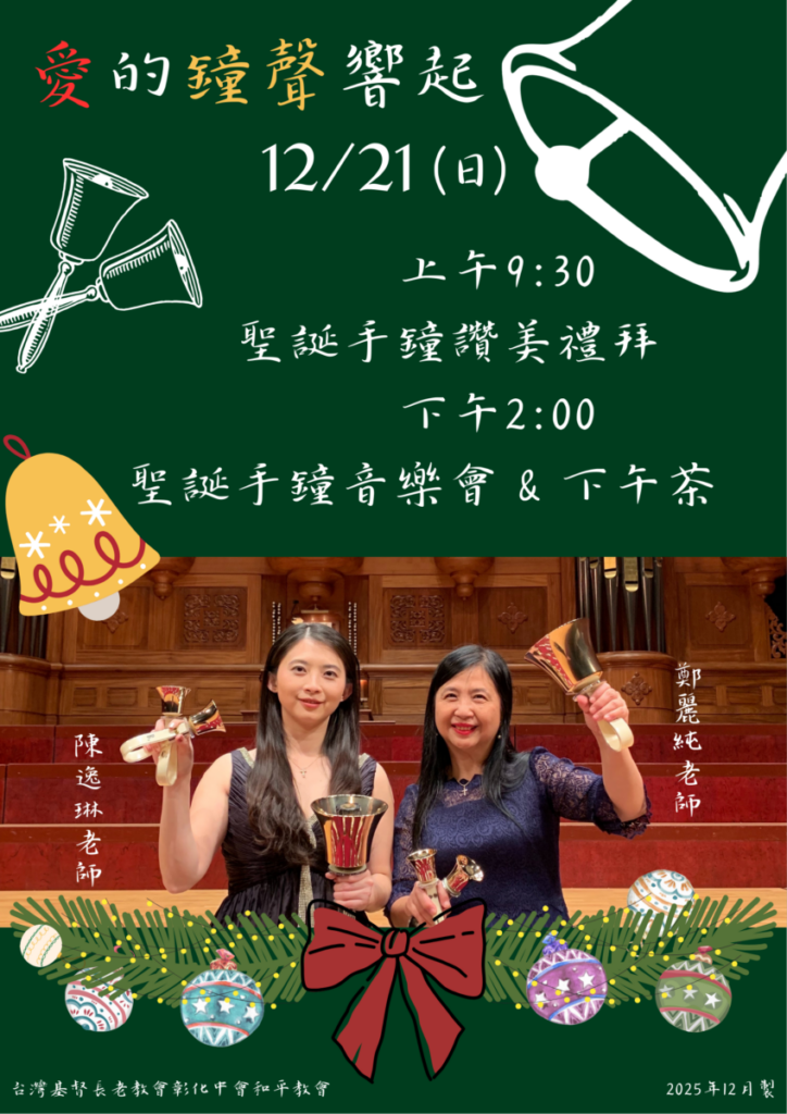 Home / 社區宣教 / 2025年12月21日和平聖誕手鐘讚美禮拜&手鐘音樂會